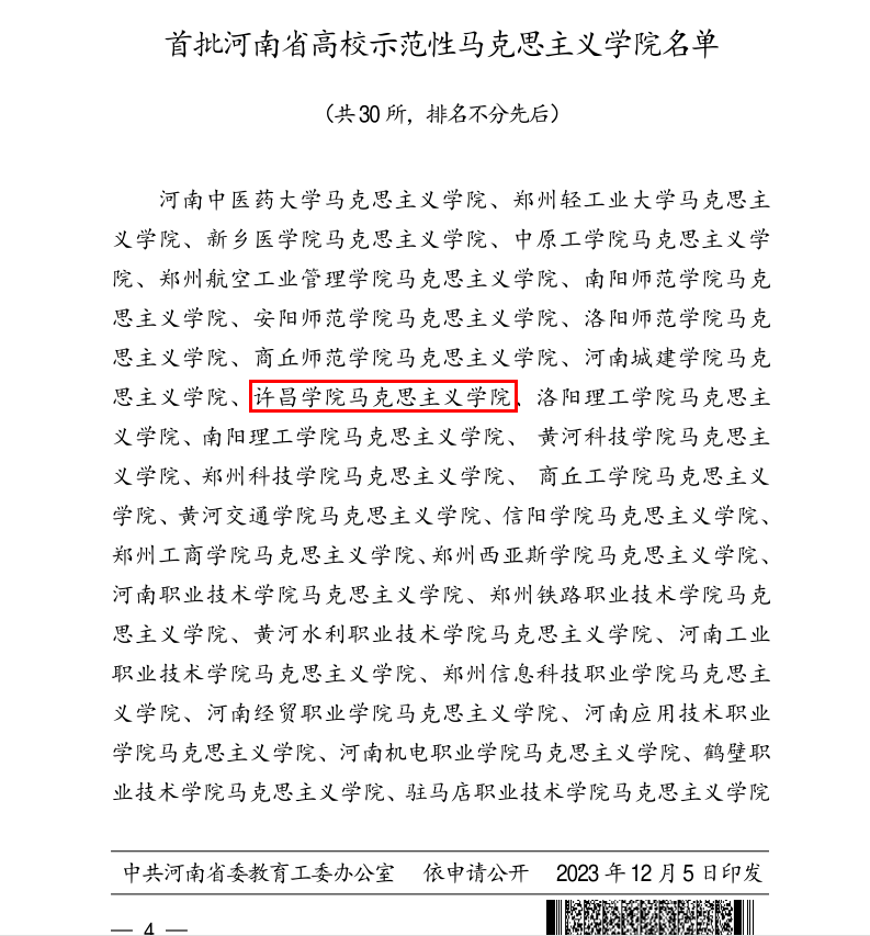 近日,中共河南省委宣传部、中共河南省委教育工委、河南省教育厅印发《关于公布首批河南省高校示范性冰球突破mg正规官网评定结果的通知》(豫教工委〔2023〕315号),冰球官网冰球突破mg正规官网成功入选首批河南省高校示范性冰球突破mg正规官网,这是冰球官网高质量发展的一项重要成果。