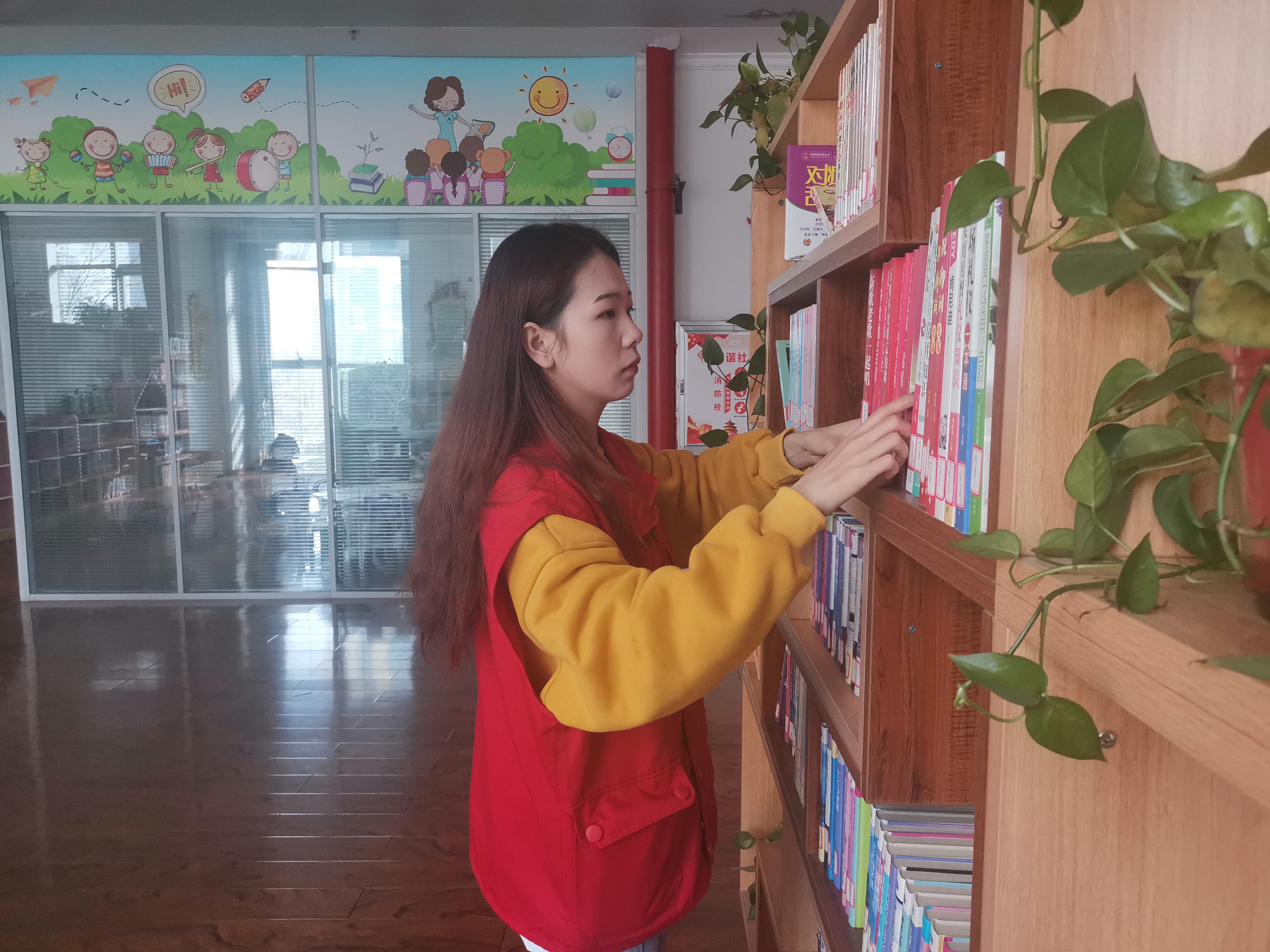 志愿者们到达空港新城社区后,基地负责人向志愿者们介绍了活动的注意事项后,志愿者们便开始了今天的志愿活动。在活动中,志愿者们把错乱的图书按照顺序重新摆放整齐,然后依据分类标准给书籍贴上相应的标签。细心的志愿者们发现有些图书的书签已经脱落了,她们小心翼翼地用双面胶将书签重新固定在图书上,最后按照摆放顺序将分类好的书籍重新摆放在已经清理干净的书架上。志愿者们又将儿童休息室里的玩具收拾归纳,把桌椅摆放整齐。在志愿者们的共同努力下,书架上的图书变得整齐有序,地面干净整洁,志愿者们看到这一成果心里也是满满的成就感。基地负责人看到志愿者们认真服务的身影,为志愿者们竖起了大拇指。